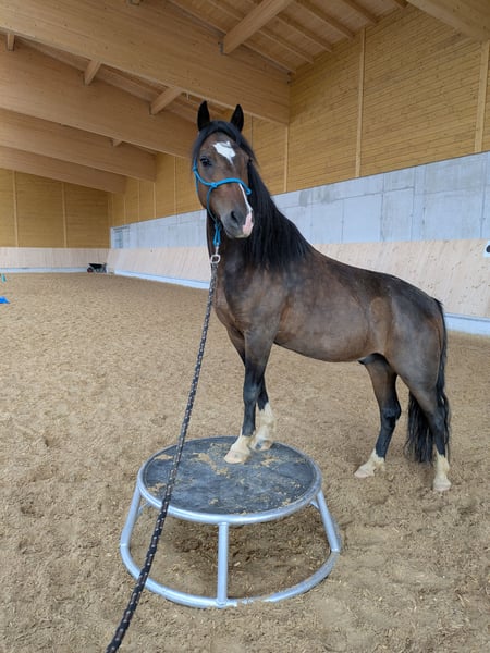 Nach langem Überlegen haben wir uns dafür entschieden unseren Kasper zu verkaufen. Er ist ein 6 Jähriger brauner Pony Mix Wallach, Stockmaß ca. 1,30m. Wir haben ihn im April 2025 gekauft für unseren Reitunterricht, leider merken wir mit der Zeit das er mit dem vielen Reiterwechsel nicht zurecht kommt, daher haben wir uns dafür entschieden für ihn ein passendes zu Hause zu suchen. Er kennt: • Longieren über Stangen und Cavalettis • Springen über Cavalettis und kleine Kreuze • Ausreiten in der Gruppe und alleine • Von Kindern wird er aktuell im Schritt um Trab auf Platz und Halle geritten • Spazieren gehen • Bodenarbeit • Freiarbeit • Schmiede und Verladefromm Kasper ist ein super motiviertes Pony das gerne arbeitet und sich immer über Beschäftigung freut. Er ist sehr freundlich, verkuschelt, neugierig und nicht schreckhaft. Ab und an ist er etwas frech, da kommt der Ponykopf durch. Wir suchen für ihn ein zu Hause in dem er eine oder zwei Bezugspersonen hat, die sich Abwechslungsreich mit ihm beschäftigen. Er steht bei uns im Offenstall in einer gemischten Herde, dort fühl er sich sehr wohl. Kasper ist eher rang niedrig. Bei uns läuft er Barhuf. Standort 82041 Oberhaching Bei Interesse bitte melden.