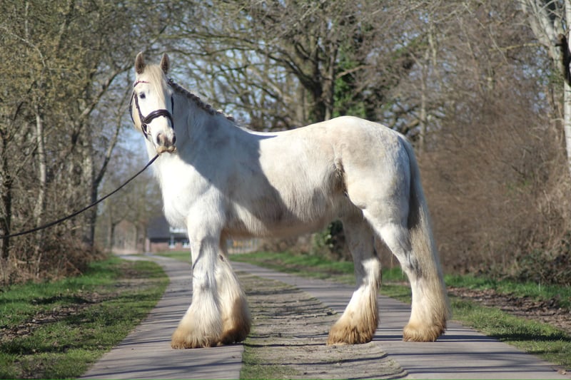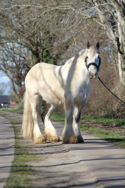 For sale is our Irish Cob gelding Mobby. Standing at 16.1 hands, he suits riders of all levels well. He is very curious and always motivated in daily work. Mobby enjoys hacking—whether with a saddle, riding pad, or completely bareback! He also happily crosses a few logs. He is by no means a lazy horse! With a high work ethic, Mobby is easy to ride; he is focused on his job both in dressage and in small jumping courses. Despite his motivation, Mobby is always well-behaved and easy to handle. He is consistently calm in handling and has no vices. A trial ride costs €15, which will be deducted from the purchase price. If desired, Mobby can be sold with accessories to his new home! If you have any questions or are interested in meeting Mobby, please feel free to contact us!