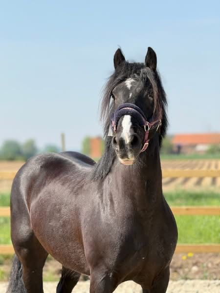Beautiful Irish Cob mare from Ireland. She stands at 1.53 meters (around 16.1 hh) and is 13 years old. She comes from Ireland where she was used as a broodmare. She is broken but remains sensitive on rides; she is fearless and confident in the field. However, she is more sensitive and challenging under saddle, requiring an experienced rider. Currently, she is not being ridden as she was previously used for a child but proved too difficult for that purpose. A life as a broodmare or as a leisure horse would suit her better. Exchange possible for a more sporty horse or an Irish Cob filly. Price: €4,500, negotiable.