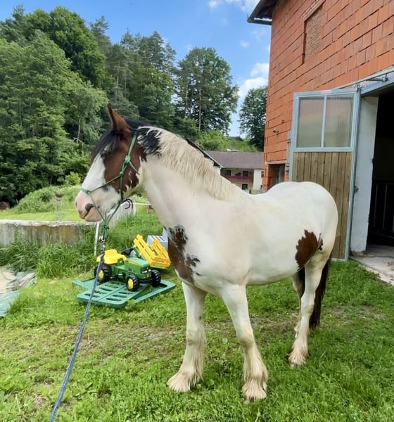 Birchlane Sassy Pants or Sissy is a beautiful filly that I bought in Ireland and shipped to Austria. I bought her In Ireland / Kerry at an Irish Gypsy Cob stud that is breeding and sourcing proper cobs in dilute colours. Sissy is now 2,5 yrs old, coming 3 in spring next year. She is lungeing, going for walks, she is used to other horses, lives in a herd, she is used to the farrier, knows farm machinery, she stands to be brushed and fussed over, she has great movement and is learning quickly. An absolute beautiful horse to either use as a broodmare or any riding discipline. She currently stands close to 15h and should finish at 15.2h. She is vaccinated, comes with a passport and rugs. Due to family changes I have made the decision to sell her.