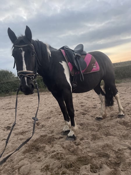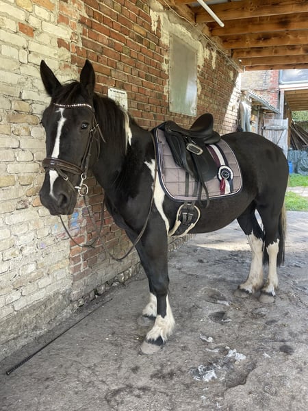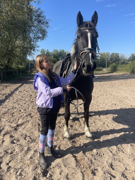 Zum Verkauf steht diese wunderschöne 4 jährige Irish Cob Mix Stute mit einem Stockmaß von ca 150. Wilma ist eine wie im Bilderbuch dargestellte Indianer-Maus, die treuer und sympathischer gar nicht sein könnte! Sehr fein zu reiten, bereits gut ausbalanciert und geerdet unterwegs! Fein am Zügel und am Bein, rennt einem aber unterm Po nicht davon! Sie hat eine Engelsgeduld und Nerven aus Stahl! Diese Stute überzeugt mit ihrer unfassbar guten Arbeitseinstellung und ist bombensicher auch im Straßenverkehr! Sie kennt es Hindernisse zu überwältigen und liebt Ausritte- Sie ging auch schon ein paar Geländestrecken und zeigt große Freude am Sprung! Auf Wilma ist stets Verlass, eine echte Freundin, die man den ganzen Tag knuddeln möchte! Sie liebt Streicheleinheiten und genießt die Aufmerksamkeit auch von vielen Kindern um sich rum! Bei Ausritten ist sie sehr nervenstark und unerschrocken! Sie hat ein angenehmes und ruhiges GO und ist von jedem Kind händelbar! Super verkuschelt und menschenbezogen. Das absolute Traumpony für Wiedereinsteiger, Kinder/ Junioren, Reitschulen, aber auch als Therapiepony einsetzbar! Kennt Abteilungsreiten und hat kein Problem damit- läuft vorne, in der Mitte, aber auch hinten-