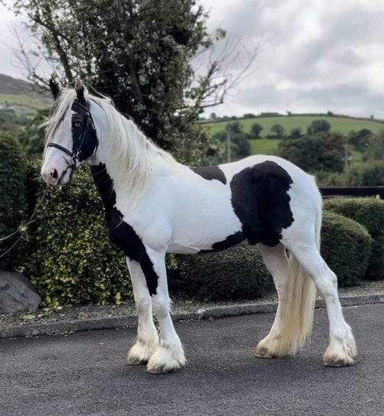 Przedstawiamy Border Lorda Naprawdę jedyny w swoim rodzaju koń. Ma rozmiar, substancję i styl. Prawdziwy wysoko kroczący Cob. Jest oswojony do jazdy w zaprzęgu i ciągnął pojazdy 2- i 4-kołowe. Służył klaczom w ręku oraz naturalnie na pastwisku. Byłby fantastycznym dodatkiem do programu hodowlanego każdego. Znajduje się w Irlandii i może pomóc w transporcie.
