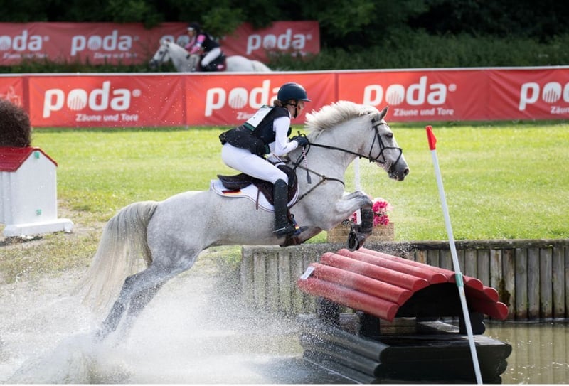Na sprzedaż jest nasz wałach Connemara, urodzony w 2014 roku i zmierzony na 149,9 cm (Certyfikat pomiarowy FEI). Jego siłą jest zdecydowanie wszechstronność, w której odniósł liczne sukcesy, zdobywając wiele miejsc i zwycięstw w zawodach CCIP2*, uczestnicząc w Mistrzostwach Niemiec, a także zdobywając brązowy medal w Preis der Besten oraz 9. miejsce na Mistrzostwach Europy dla kuców. W skokach również może pochwalić się zwycięstwami do 1,15 m i miejscami do 1,20 m. W ujeżdżeniu osiągnął wyniki do poziomu A. Życzymy sobie, aby znalazł się dla niego jeździec, który będzie mógł rozwijać się w sporcie razem z nim i uczyć się od niego. Jest otwarty na wszelką zabawę, zawsze grzeczny, ale z wystarczającą ilością "power" i w parkurze oraz terenie jest absolutnie pewnym koniem. Aktualne zdjęcia rentgenowskie bez zmian są dostępne.