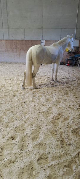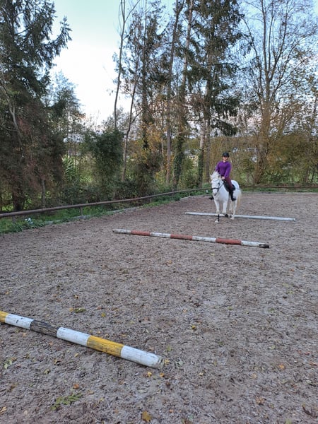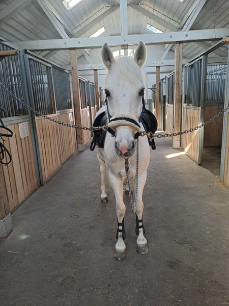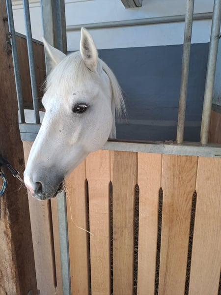 Dali ist ein 12-jähriger Connemara-Wallach, der im Alter von knapp 6 Jahren zu uns kam, von zwei jungen Mädchen (9 und 11 Jahre) geritten. Sowohl in der Halle als auch auf dem Reitplatz oder Grasplatz war er stets problemlos – mit und ohne Sattel. Dali lässt sich sehr gut longieren und liebt die Bodenarbeit. Dressurmäßige Arbeit macht ihm genauso Freude wie Stangenarbeit oder kleine Sprünge, solange die Abwechslung stimmt und keine Langeweile aufkommt. Unterbauten mag er nicht, und Springturniere sind nicht seine Welt – dafür zeigt er sich am Tag der Jugend stets brav und verlässlich. Beim Ausreiten ist Dali alleine ruhig und zuverlässig, benötigt jedoch eine konsequente Reiterhand. In der Gruppe ist er ebenfalls gut händelbar, lediglich am Ende der Gruppe im Galopp fühlt er sich nicht wohl. Insgesamt ist er ein fein zu reitendes Pony mit Charakter. Dali sucht einen Platz, an dem er die Nummer 1 sein darf. Er wünscht sich ein Zuhause mit ein bis zwei festen Bezugspersonen, da er häufige Reiterwechsel nicht mag. Er eignet sich hervorragend für den Freizeitbereich, ohne große Turnierambitionen. Dressurprüfungen im Rahmen des Tages der Jugend sind für ihn jedoch kein Problem. Besonders gerne wird Dali am Halsring geritten und zeigt dabei seine Freude an der Zusammenarbeit. Auch Bodenarbeit und Longieren gehören zu seinen absoluten Stärken. Wir sehen ihn nicht als reines Anfänger- oder Verlasspony. Jugendliche oder Erwachsene mit Erfahrung sind seine idealen Partner. An der Longe kann er jedoch auch von jüngeren Kindern geritten werden. Gesundheitlich ist Dali unkompliziert: Er hatte nie eine Kolik. Husten trat früher auf, konnte jedoch vollständig durch bedampftes Heu behoben werden. Er ist regelmäßig geimpft, entwurmt und die Zähne werden routinemäßig kontrolliert. Beim Hufschmied ist Dali brav, kennt Barhuf, war vorne beschlagen oder auch an allen vier Hufen. Im Sommer liebt er Wasser, ist verspielt, ein echter Clown und bringt viel Freude in den Alltag.