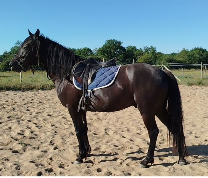 Louki de LIAF, ein 5-jähriger Connemara-Wallach, 145 cm. Ein freundliches, sehr liebenswertes Pony, das im Alltag leicht zu handhaben ist. Louki verfügt über gute Springfähigkeiten und ist energisch. Er ist bereits in allen drei Grundgangarten eingeritten, befindet sich aber noch im Lernprozess. Geeignet für einen sicheren Reiter, der die drei Grundgangarten beherrscht und ihn fachgerecht betreut. Video auf Anfrage.