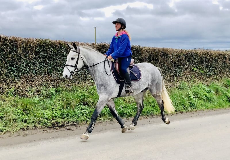 Nemo is a 5 year old 15.2hh purebred dappled grey Connemara gelding with a very eye-catching presence and quality type. He would be best suited to an experienced home, ideally someone who enjoys bringing on a young horse and developing his full potential. Nemo has the ability and attitude to become a serious competition horse and has the scope to progress into the higher classes. He has jumped up to 1m here and loose schools over 1.20m. He is quiet in nature, loves to jump, always approaching his work with enthusiasm and a willing attitude. He rides in a soft snaffle mouth and naturally carries himself in a lovely outline. Nemo has three good paces and is a straight, correct mover. He is particularly enthusiastic about jumping and cross-country and takes everything in his stride while always trying to please his rider and keeps a soft contact. He is eager to work and shows a fantastic work ethic every day. Nemo hacks out confidently both alone and in company and is quiet and sensible in open spaces. He is very straightforward to manage and is easy to shoe, box, catch, clip and ride in traffic. Nemo has no stable vices and is open to any vetting. He comes with lovely breeding by Ballygarris Highflyer out of Hillview Fame. This talented and genuine gelding should make an ideal partner for a competitive home looking for a quality Connemara to produce. Price includes delivery to your yard in the UK and an exchange option if you are not happy. For more information please call anytime on 00353 868077626 or email gertytynan@gmail.com.