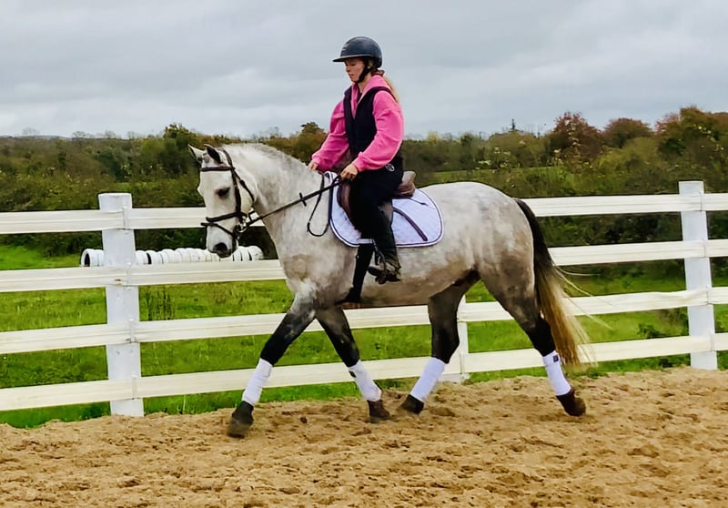 Prince, pięcioletni, pełnoporcowy wałach konnemarowy, który przyciąga uwagę wszędzie, gdzie się pojawi. Obecnie ma 15 hh i jeszcze trochę urośnie, a jego wyrazista sylwetka odzwierciedla jakość i charakter, za które rasa konnemara jest tak ceniona. Z piękną konformacją, przyjaznym wyrazem twarzy i łagodnym temperamentu, Prince jest nie tylko cieszącym oko koniem, ale także prawdziwą przyjemnością w stajni. Prince jest wyjątkowo dobrze wyhodowany: jego ojcem jest Cornfield Prince, a matka pochodzi od Johns Pride, z dalszymi przodkami sięgającymi Matchmakers Lad. Jego rodowód odzwierciedla się zarówno w jego umiejętnościach, jak i w usposobieniu. Od początku wykazywał niezwykłą wszechstronność, inteligencję i chęć do współpracy z jeźdźcem. Bez względu na wymagania, wykonuje zadania z pełnym zaangażowaniem i szczerym, kooperatywnym nastawieniem. Pod siodłem Prince to prawdziwa przyjemność. Jest spokojny, przyjazny i łatwy w jeździe, co czyni go idealnym partnerem dla różnych jeźdźców. Porusza się pięknie we wszystkich trzech podstawowych chodach, które są wyważone i wyraziste, a naturalnie prezentuje lekko wznoszący się zakres ruchu. Skoki przez przeszkody są dla niego zarówno odważne, jak i ostrożne, a na własnym terenie pokonał już pewnie przeszkody do 1 m. Uwielbia skoki, jak i jazdę terenową, i pokonuje każdą przeszkodę oraz zadanie bez wahania czy zdenerwowania. Niezależnie od tego, czy to zawody skokowe, wszechstronne, czy zwykła przejażdżka dla przyjemności – Prince podchodzi do każdego wyzwania z entuzjazmem i spokojem. Prince to koń, który pasuje do wielu jeźdźców i sytuacji. Będzie idealnym wyborem dla kogoś, kto przechodzi z mniejszych kuców, dla rodzin dzielących się opieką, jako cenny nabytek dla szkoły jeździeckiej lub jako utalentowany partner dla ambitnego domu. Dzięki swojemu charakterowi i talentom, nadaje się do wszelkiego rodzaju aktywności jeździeckich – od rekreacji, przez ujeżdżenie, aż po skoki. W stajni Prince pokazuje swoje najlepsze oblicze. Jest łatwy do podkuwania, załadunku, złapania i ogólnie bardzo przyjazny. Jest bezpieczny zarówno podczas jazdy solo, jak i w towarzystwie, a także w ruchu drogowym. Nie ma żadnych problemów z zachowaniem w stajni i jest świetnym towarzyszem dla innych koni. Prince ma obiecującą przyszłość i szuka kochającego domu, w którym będzie mógł dalej się rozwijać i błyszczeć. Jest otwarty na każdą kontrolę weterynaryjną, a dla większego komfortu transport na terenie Wielkiej Brytanii jest wliczony w cenę, podobnie jak możliwość wymiany, jeśli nie będziecie w pełni zadowoleni. Konie takiej jakości i o tak zrównoważonym usposobieniu są rzadkością – Prince to prawdziwy wszechstronny supergwiazdor, który z powodzeniem odnajdzie się w każdej dyscyplinie. Aby obejrzeć Prince’a w akcji, przewiń w dół i obejrzyj jego film. W razie pytań, możesz skontaktować się ze mną pod numerem 00353 86 8077626 lub wysłać e-mail na gertytynan@gmail.com. Prince to naprawdę koń jak żaden inny – i jest gotów, by teraz uczynić kogoś niezwykle dumnym.
