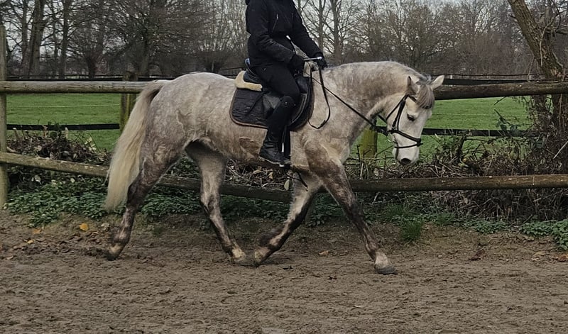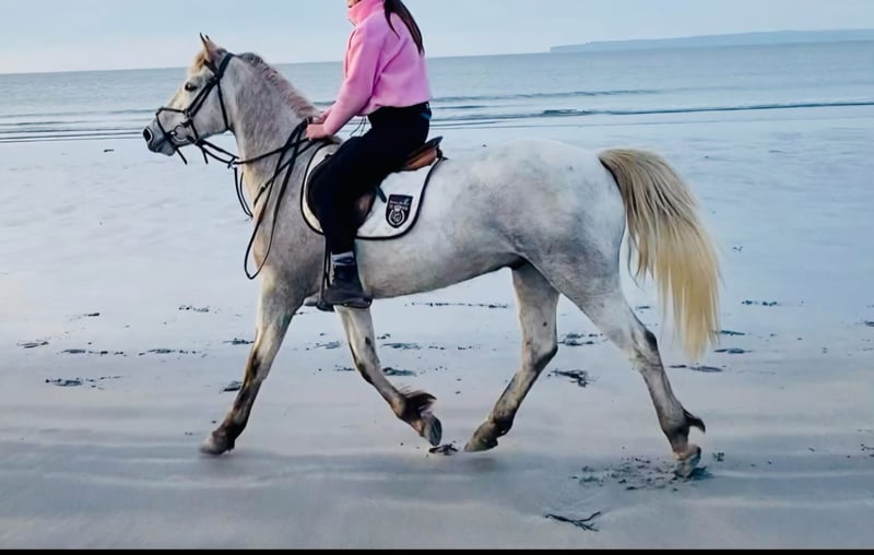 Milo is currently a 15.3 hh Connemara gelding (still growing) by Barana Dexter Boy, Dexter Leam Pondi/Glencarrig Zara, and Glencarrig Knight. HWSD status N/N. We imported Milo directly from Ireland this June. He came straight from the breeder. Earlier this year, Milo was gently backed there. He was already confident enough to jump a course and was regularly ridden out. As seen in the pictures, Milo comes from the Irish coast, where he was regularly ridden along the sea. :-) In June, Milo was fully vetted with no findings. He then went into private ownership, where he has been trained in dressage for the past six months. Milo is now competing at beginner A level in dressage and has also been ridden out regularly in the terrain. He has always been calm and fearless. We are now selling him with a heavy heart due to lack of time. Milo has excellent conformation and movement, is easy to ride, and always 100% reliable. This pony is simply wonderful. :-) He is a real charmer and a sweetheart. He loads easily onto the trailer, stands patiently for the farrier, and is absolutely herd-friendly. Milo is a pony for connoisseurs, lovers, or those who want to become one. Connemara ponies can do absolutely everything. We look forward to your calls at: 0177/2721831. Price on request.
