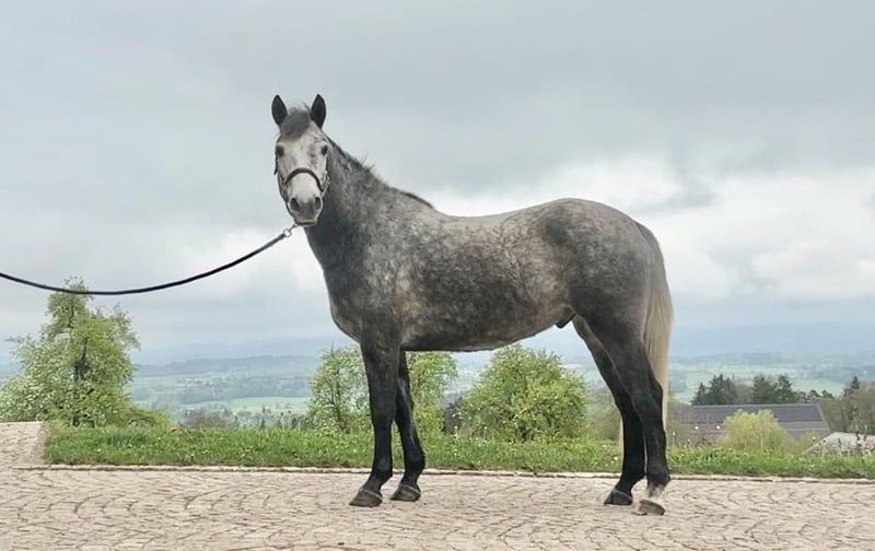Gelding, Grey, born in 2020, Connemara, 15.2 hh Versatility at its finest – but see for yourself! The photos and videos speak for themselves. He is very people-oriented and gentle in handling as well as under saddle. He is content with himself and the world around him, approaches new learning steps calmly and with interest, and I believe he will be talented in many disciplines. Under saddle, he is well-rounded and has a very pleasant temperament. He is familiar with riding in the arena and in the field, and he is comfortable in group settings at all gaits and positions. When ridden alone, he can still be somewhat unsure in certain situations due to his age, but he never reacts impulsively. His solid, correct conformation makes training straightforward and easy. He has never been injured or ill. In ground work, Teddy is also very interested in everything and knows the basics of equicentric training and lunging in a bitless bridle. We are looking for a person or family who loves Teddy, wants to spend a lot of time with him, and can continue to develop him. I see Teddy successfully competing in many disciplines with an ambitious leisure rider, but he is also suitable for pure recreational riding. A good home with plenty of turnout is very important to us! He lives here in an open stable and gets along perfectly with the other horses, being playful and social. Teddy was born in the Connemara National Park and spent his ideal childhood there. In 2024, Teddy moved to Switzerland. His owners are emigrating, which is why he is now available for sale. Getting to know him in 8132 Hinteregg.
