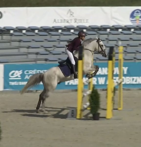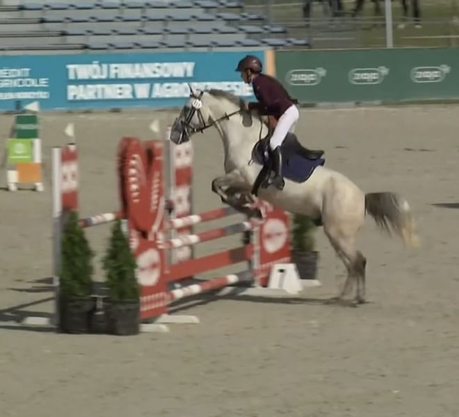 7-jähriger Wallach, Connemara-Pony, startet bis Niveau D-bis, auch bei den Polnischen Meisterschaften 2025. Zu Hause wurde er bis 1,20 m hoch gesprungen. Das Pferd hat einen sehr guten Charakter und ist leicht zu reiten. Beide Elternteile sind geprüft und erfolgreich im Sport. 100 % der Geschwister des Wallachs sind Ponys, die im Springen bis auf Meisterschaftsniveau starten. Das Pferd stammt vom Züchter.