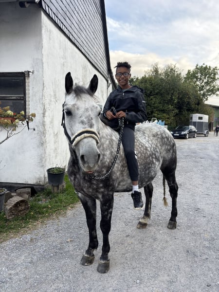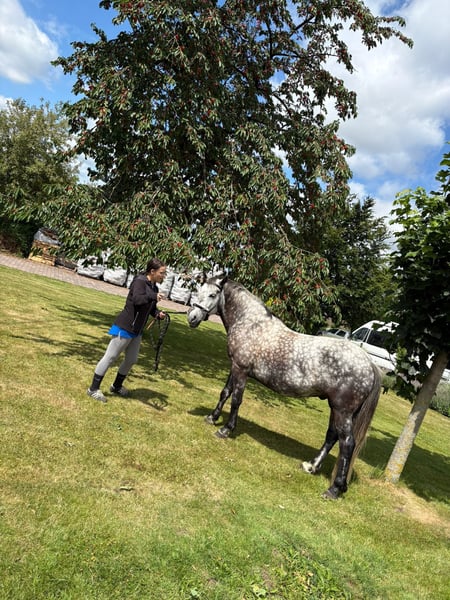 Vendesi pony Connemara – Perfetto per il tempo libero e il divertimento In vendita un bellissimo castrone Connemara, nato nel 2017. Questo affascinante castrone grigio perlino conquista per il suo carattere amichevole e le sue molteplici possibilità di impiego. Con un'altezza al garrese di 146 cm, è ideale per gli appassionati di equitazione ricreativa che cercano un cavallo affidabile e affabile. Il castrone è ben addestrato, in buona salute e regolarmente montato. Si presta inoltre per passeggiate in campagna e uscite rilassanti in gruppo. Per interessati o per ulteriori informazioni, siamo lieti di ricevere il vostro contatto. È possibile visitarlo su appuntamento.