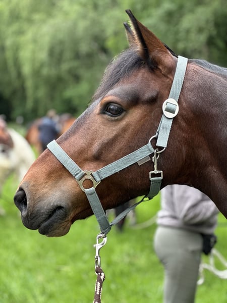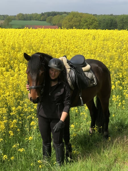 Verkaufen meinen artigen Connemara Wallach Oskar. Er ist nun 8 Jahre alt wird im Mai 9. Er ist ein sportliches 153cm großes Pony. Am liebsten geht er ins Gelände egal, ob mit Springsattel oder auf Wanderritten mit Westernsattel. Auch ohne Sattel kein Problem. Er macht alles mit. Geländesprünge,Springstunde, Dressurarbeit oder Reiterspiele er hat vor nichts Angst. Verlade/schmiedefromm; er geht auch allein ins Gelände und steht auch alleine auf dem Anhänger. Kein bocken kein Steigen keine Unarten. Er ist ein Vertrauenspferd, das bedeutet das er ein paar Runden brauch bis er dem Reiter vertraut, das hat er bis lang super gemeistert, und geht dann entspannt, hat man ihn für sich gewonnen geht er durch dick und dünn. Er ist nicht für Anfänger geeignet die oben auf dem Pferd rumzappeln das mag er nicht. Ein ruhig sitzender Reiter wäre von Vorteil. Zurzeit reitet ihn ein Mädchen, daran hatte er sich nach 3x reiten gewöhnt. Er kennt Reithalle,Platz, Straßenverkehr und Gelände jeglicher Art. Ich habe ihn mit 4 gekauft und selbst eingeritten. Er geht eher Tief eingestellt als das er sich selbst oben trägt. Einfach am Schenkel und am Gebiss. Platz vor Preis. Ich verkaufe ihn da ich den Reitsport aufgebe. Zubehör wie wanderreitsattel oder Springsattel etc. Stehen auch zum verkauf. Vorne hat er Eisen die aber nicht zwingend notwendig sind. Probereiten liegt bei 30Euro was bei Kauf verrechnet wird.
