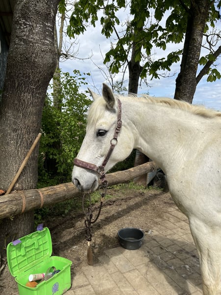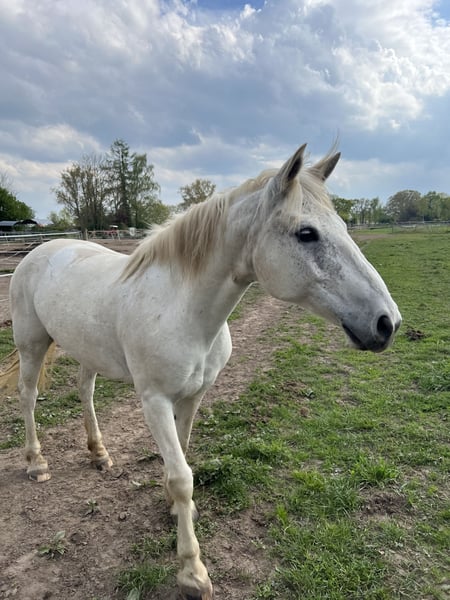Schweren Herzens suche ich für meine liebe Stute Curlea ein neues, passendes Zuhause. Steckbrief: Rasse: Connemara Geschlecht: Stute Stockmaß: 147 cm Alter: 10 Jahre Farbe: Weiß Nutzung: Freizeit geritten Barhuf Ausstattung (bei Wunsch gegen Aufpreis übernehmbar): Angepasster Westernsattel Trense Decken Hufschuhe Halfter, Stricke Putzkasten Zu mir Curlea: Ich bin vom Händler direkt zu meiner Besitzerin gezogen und lebe seit her bei ihr. Leider kann sie aus finanziellen Gründen das nicht mehr stemmen. Ich bin sehr verschmust, liebe es gekrault zu werden und bin für jeden Spaß zu haben. Ich liebe es lange Spaziergänge oder Ausritte zu machen und übe gerne Zirkuslektionen. Langsam dürfen die Ponys gehen, ich halte sehr gut bei den großen mit und laufe auch gerne mal etwas schneller, triebig ist mir ein Fremdwort. Daher solltest du schon etwas Erfahrung haben und viel Spaß am Ausreiten mitbringen. Zusammengefasst: Wenn du auf der Suche nach einer treuen Freizeitpartnerin bist, die dich durchs Gelände trägt, Spaß an Ausritten hat und dir viel Freude bereitet, dann könnte Curlea genau die Richtige für dich sein. Curlea steht in der Nähe von Thedinghausen und kann gerne kennengelernt werden. Kontakt: schreib mich bitte einfach an und erzähl ein bisschen was über dich;) Keine Abgabe an Händler