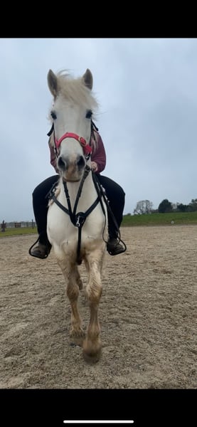 Wir haben dieses hübsche Pony als Projektpony gekauft. Wie man sieht, können wir es nicht trimmen 🤣 DIE TRIMMELEISTE WIRD DIESER WOCHE BEHEBT. Sie läuft an der Leine wie ein Hund – man kann das Ende der Führleine in der Hand halten, und sie trottet einfach neben einem her. Sie bleibt stehen, während man sie striegelt, sattelt usw., egal ob angebunden oder frei. Wir haben sie zuhause über 1 m springen lassen und zeigen sie momentan auf 70 cm. Es wird noch mehr mit ihr gemacht, bis sie verkauft wird. Wir haben sie alleine und in Gesellschaft geritten, alles ist völlig in Ordnung. Sie kann manchmal ein bisschen neugierig schauen, wenn sie allein ist, aber sie macht nichts, sie hat noch nie einen Fehler gemacht. Sie ist gut für den Schmied, Tierarzt und beim Aufladen. Offen für tierärztliche Checks. Bitte besichtigen Sie sie vor dem Kauf.