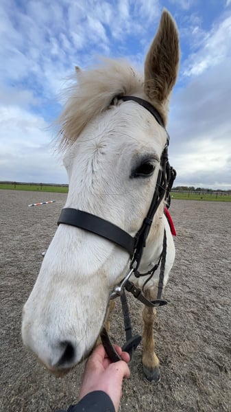 Wij hebben deze prachtige pony gekocht als projectpony. Zoals je kunt zien, kunnen we niet knippen 🤣 DE KNIP BEVINDT ZICH DEZE WEEK IN DE VOORKEUR. Ze loopt als een hond aan de lijn; je kunt de eind van het halstertouw vasthouden en ze loopt gewoon rustig naast je. Ze blijft staan terwijl je haar borstelt of opzadelt, of ze nu vastgebonden is of niet. We hebben haar thuis al gesprongen op 1 meter en we tonen haar momenteel op 70 cm. We zullen nog meer met haar doen totdat ze verkocht wordt. We hebben haar zowel in haar eentje als in gezelschap gereden, en ze is volledig gezond en kalm. Ze kan af en toe wat oplettend kijken als ze alleen is, maar ze doet verder niets. Ze heeft nog nooit een fout gemaakt. Ze is braaf voor de hoefsmid, dierenarts en om te laden. Open voor veterinaire keuringen. Ze moet vóór verkoop bekeken worden, alstublieft.