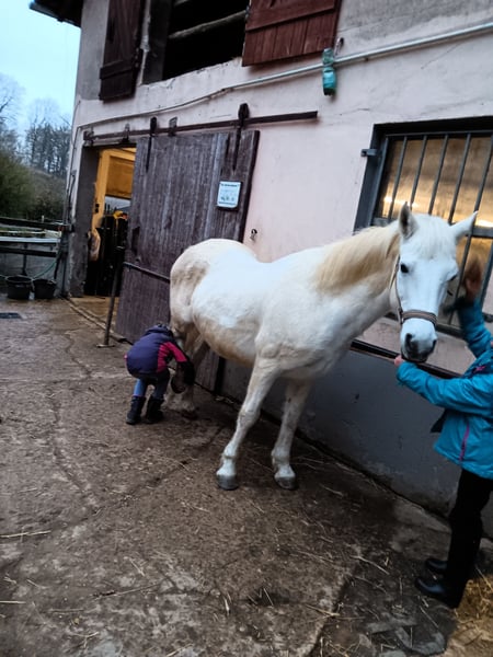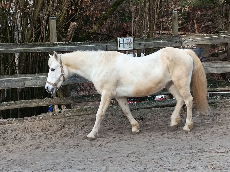 Ich verkaufe unsere 15 jährige (2010) Connemara Stute Bella. Sie ist 1,44m groß. Im Nov/Dez frisch entwurmt, geimpft, Hufe und Zähne gemacht. Lt Vorbesitzer hat sie die ersten Jahre in Irland als Zuchtstute gelebt, hat dann aber, als sie 2022 nach Deutschland kam, einen neuen Pass bekommen, ohne Abstammungsnachweis, daher kann ich dazu leider nichts sagen. Bella kam dieses Jahr im Februar zu uns, sie sollte für meine 7jährige Tochter und meinen kleinen Reitschulbetrieb eingesetzt werden. Was aber leider nur bedingt möglich ist. Bella wurde im letzten halben Jahr 5x die Woche im Schulbetrieb im Schritt mit kleinen Kindern geführt, oder mit den größeren auch frei im Schritt, Trab und Galopp in der Halle und auf dem Platz geritten und im Schritt auch im Gelände. Sie läuft mittlerweile bei mir ohne Eisen, kam aber vorne Beschlagen zu uns. Aufbrennen und Nageln findet sie überhaupt nicht gut, lässt es zwar tapfer über sich ergehen, hat aber wirklich starken Stress bei uns gezeigt, daher haben wir die Eisen abgelassen und ziehen ihr vorne im Gelände Hufschuhe an. Das klappt super und auf den Rasengittersteinen kommt sie bei uns auch gut ohne Eisen zurecht. Ausschneiden und Radpeln ist aber überhaupt kein Problem. Als wir sie geholt haben, ist sie anstandslos auf den Anhänger gegangen, hab ich hier danach nicht mehr geübt. Während der Fahrt stand sie ganz ruhig, war aber nass geschwitzt, als wir ankamen. Ich denke, dass sie diese ganzen Sachen einfach nicht kennt, da sie in Irland einfach 24/7 draußen war, mit wenig Menschenkontakt. Sie war anfangs auch noch recht scheu und geht auch heute noch ein paar Schritte weg, wenn jemand sie holen möchte. Mit ner Möhren in der Hand ist das aber gar kein Problem. Was Umweltreize angeht ist sie total unerschrocken, weshalb ich sie auch für den Schulbetrieb gekauft hatte. Kinder, Hunde, Autos, Trecker, Fahrräder, alles total egal. Im Gelände geht sie vorne oder hinten, alleine oder in der Gruppe. Sie klebt nicht, kann auch alleine bleiben, hat aber wenig Geduld, wenn sie mal länger irgendwo angebunden warten soll und scharrt dann leider. Und jetzt der Grund, warum wir sie abgeben möchten. Bella ist beim Reiten sehr sensibel. Mit einem entspannten Reiter, auch kleinen Kindern, ist der Schritt und Trab oder bei Fortgeschrittenen auch der Galopp, gut machbar. Sie ist zwar dressurmäßig nicht weit ausgebildet, aber für gemütliche Ausritte oder die Arbeit auf dem Platz/Halle ein absolutes Verlasspferd. Meine Tochter kann sie alleine über den Hof reiten oder auf dem Platz traben, über Stangen reiten oder durch den Geschicklichkeitsparcour. Kommt aber ein ängstlicher, klemmiger Reiter auf ihren Rücken, bekommt sie totalen Stress. Sie erschreckt sich vor dem Bein, bleibt nicht ruhig stehn, wird schnell und lässt sich dann auch nicht mehr entspannt mit dem Reiter drauf führen. Und genau das ist für den Reitunterricht weder für den Reiter noch fürs Pferd wünschenswert. Man merkt ihr bei diesen Kindern dann an, dass sie total überfordert ist. Mit ihrer Reitbeteiligung, meiner Tochter oder entspannten Kindern blüht sie förmlich auf, verzeiht kleiner Fehler und ist total motiviert. Auch an der Longe hatte ich schon einige Kinder im Schritt und Trab drauf sitzen. Das klappt auch gut, solange die Kinder ruhig und locker bleiben. Bella ist zwar recht flott, aber immer händelbar und nach Aussage der Kinder, sehr bequem im Trab zu sitzen. Da ich hauptsächlich Anfänger unterrichte und auch viele Kinder habe, die ängstlich sind, ist Bella im Schulbetrieb fehl am Platz und ich möchte dem Pferd das auch ersparen, mit Stress geritten zu werden. Vom Boden aus ist sie ein absoluter Schatz. Jeder Anfänger kann sie führen und Putzen. Manchmal stellt sie sich etwas sturr beim Umdrehen oder Hufe auskratzen, was einfach mit der fehlenden Routine bei Pferd und Reitschülern zu tun hat. Sie läuft brav an der Longe und liebt es spazieren zu gehen. Körperlich hat sie leider eine Einschränkung, da sie einen leichten Senkrücken hat, kann sie nicht mit Sattel geritten werden, da der drückt und sie ist dadurch auch kein Gewichtsträger. Bei mir reiten nur kleine Kinder und Jugendliche, das ist kein Problem, ein leichter Erwachsener kann sich bestimmt auch drauf setzten, haben wir aber hier nicht getestet. Sie wird nur mit Pad geritten und gebisslos. Sie hatte zwar schon Trensen im Maul, aber da spielt sie viel mit der Zunge, auch hier vermute ich, das sie es einfach nicht kennt. Ausgebunden longiere klappt auch, aber nicht mit Reiter auf dem Rücken. Sie hat noch immer einen sehr starken Unterhals und eine schwache Rücken- und Bauchmuskelatur, da steckt noch etwas Aufbautraining drin. Aber die leichten Kinder/Jugendliche trägt sie ohne Probleme. Ansonsten hat sie bei mir keinen Krankheiten oder Allergien gezeigt und mir ist von der Vorbesitzer nichts bekannt. Sie wurde vom Vorbesitzer verkauft, weil sie dort von der kleinen Herde nicht in Ruhe gelassen wurde, kam nicht ans Futter und musste separat gestellt werden,was natürlich so nicht gewollt war. Bei uns steht Bella in einer offenen Box mit Paddock, zusammen mit 3 weiteren Ponys, was nach einer kurzen Eingewöhnungszeit, problemlos funktioniert. Sie ist in der Rangfolge im guten Mittelfeld. Im Sommer war sie tagsüber auf der Weide, jetzt im Winter stehen die Pferde am Tag auf Paddocks mit Heuraufen. Zusätzlich zum täglichen Unterricht, lass ich sie nur alle 2-3Tage laufen, ansonsten ist sie auch mit weniger Bewegung im Winter sehr ausgeglichen. Sie kennt Boxenhaltung, Stoh- oder Spähneeinsteu, kann Heu oder Heulage fressen und bekommt nur ein paar Krümelchen Müsli, damit sie ihr Mineral frisst. Sie ist eher der schlanke Typ und bekommt bei uns reichlich Heu und jetzt im Winter 1x pro Woche Mash und jeden Tag ein paar Möhren. Mit Äpfel muss man ihr nicht kommen, die mag sie nicht. Bella wurde bei uns Herpes, Influenza, Tetanus und Tollwut geimpft. Im November, August und Mai e