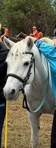 Our beloved Connemara mare was successfully used in our riding school for several years. She particularly demonstrated her speed, agility, and fearless nature during Pony Games, where she often shined. Today, she mainly enjoys relaxed hacks and has introduced many of our youngest riding students to the world of horses.