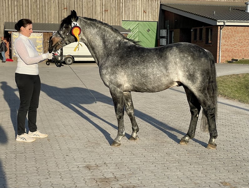 Tallulah ist eine sehr hübsche, im Ponymaß bleibende Connemara Stute. Sie ist aktuell ca 1,41 m groß. Als Fohlen wurde sie prämiert. Sie weiß sich toll zu bewegen und macht erste Sprünge im Freispringen. Sie wird über Sommer in einer Herde laufen und kann bis Herbst gerne hier auf dem Gestüt bleiben. Vater Dunlewey Red Kite wird im HB1 des Zfdp geführt und hat als Jungpony seine Hengstleistungsprüfung in England gegen Grosspferde absolviert. Ein immer fröhliches Pony und toll zu reiten. (Nach Schweden verkauft) Mutter Tra Ban ist direkt aus Irland importiert worden. Stutbuch 1 in Irland und SB1 im PSBSH. Sie hat bei uns immer hoch prämierte Fohlen bekommen. Unsere Ponys sind alle Halfter führig und für jede Sparte der Reiterei zu begeistern. Hwsd n/n, geimpft und entwurmt. Preis ist verhandelbar, jedoch möchte ich meine Ponys nicht „verschenken“!