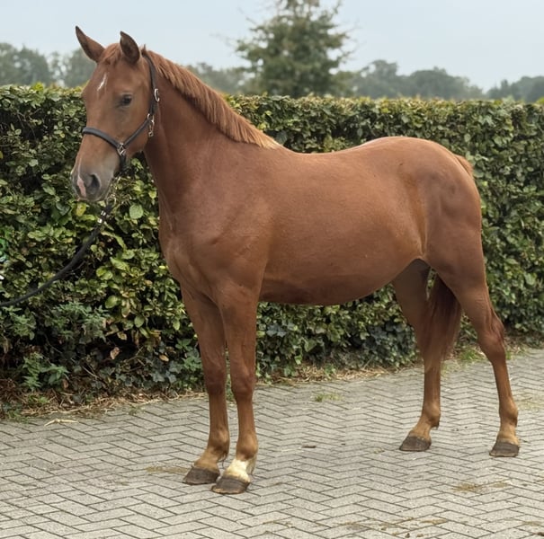 Beautiful three-year-old D pony mare. This mare can move very well and also jumps excellently. She was recently imported from Lithuania. The pony is correct and honest. She is well-behaved when being led. Furthermore, she is still untrained. A nice pony to work with. She has all-round potential. A video can be requested via WhatsApp. Very nice young 3-year-old D pony mare. She currently stands at 1.47m. The pony has all-round qualities. She has a strong hind leg with good bend. She easily transitions into the canter and has good balance. Her first free jumping session was also promising. She has quick reflexes and jumps with excellent technique. If interested, please send a message. A video is available.