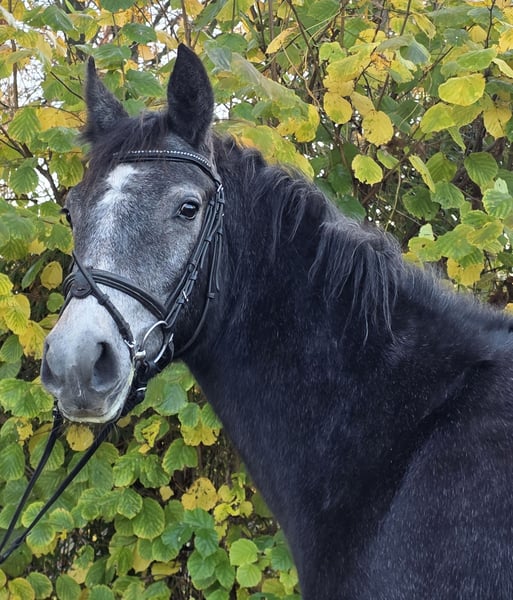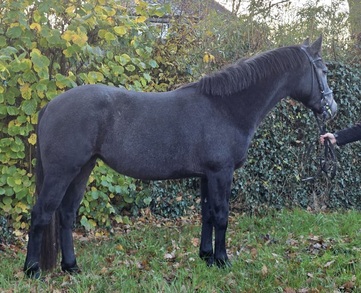 Lass is a approximately 15.2 hh Connemara mare with full papers. She is still expected to grow a bit more. :-) She has the HWSD status N/N. Lass is by the well-known stallion Shadows Dun. More detailed pedigree information can be sent via WhatsApp upon request. Lass arrived directly from her homeland in a rough condition. She has been gently backed for the past three months. She is therefore lightly started under saddle. Lass is simply well-behaved in every situation. Additionally, she has potential for jumping, which is no surprise given her pedigree. :-) You can see once again that Connemara ponies are versatile. Of course, she is accustomed to herd life and is currently still kept mostly outdoors. For more information, we look forward to your call at: 0177/2721831.