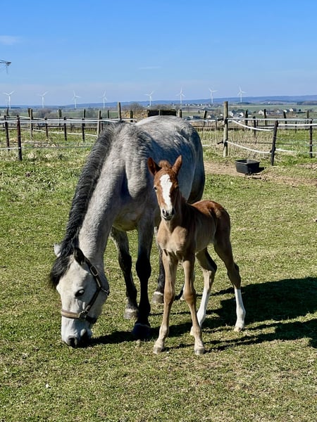 One for the future! Promising 5 year old Class 1 full Connemara mare with excellent bloodlines (Rialto Gillian de Seguret X Cloon-Eile-Cashel) is looking for a five star new home. KIYA'S CALHEESY OF PEYREDRAGON Very nice feminin model, small size D, NN for HWSD, registered in Belgian stud book, very good mover who is eager to learn and to please. Loads easily, fine with farrier. In order with vaccination, deworming and dentistry. Used to stabling and living in a herd outside. Has been gently and slowly trained in groundwork and broken in by horsemanship professional and ridden by a child (see video) at the end of 2025. Will start her jumping education in April. Lovely gaits. Had a very nice filly foal by a son of Banks Timber last year (see photo) – foaled easily on her own and turned out to be an excellent mum. Can be visited in Bastogne in Southern Belgium. More information, photos and videos on request. Price negotiable for the right home.