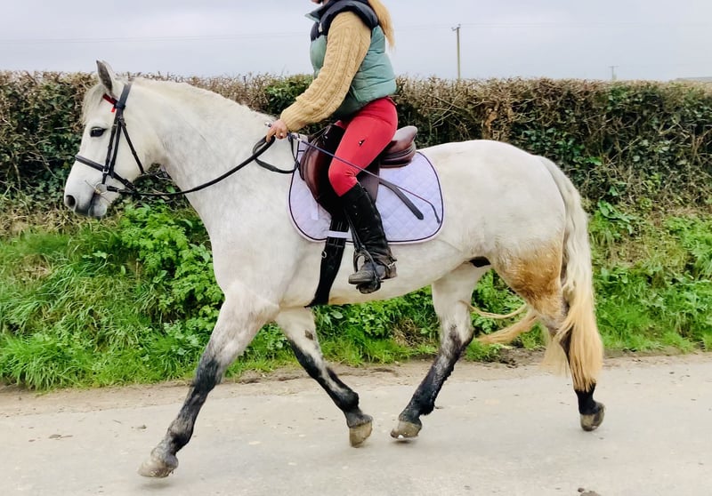 ⭐ Maggie – Hervorragende 15hh Class 1 Connemara Stute – Ruhig, Ehrlich & Perfekt für Kinder ⭐ • Maggie ist eine wunderschöne 5-jährige Class 1 Connemara Stute mit einem Stockmaß von 15hh, ein traditioneller Typ mit viel Knochenstärke, Substanz und Qualität. • Außergewöhnlich ruhig und unkompliziert, ideal für Kinder, Anfänger, Mutter-Tochter-Reiterpaare oder Reitschulen. • Wurde bereits von jungen Kindern geritten, bei der Jagd vorgestellt und auf kleineren Turnieren gestartet, wodurch sie ihre Ehrlichkeit und Zuverlässigkeit bewiesen hat. • Sie besitzt ein sehr freundliches und ausgeglichenes Wesen und ist eine angenehme, liebe Stute im täglichen Umgang. • Gut dressurmäßig gearbeitet, mit einem weichen Trensengebiss und kann auch locker am langen Zügel geritten werden. • Drei hervorragende, gerade Grundgangarten, bequem und ausgeglichen zu reiten. • Springt einen Parcours sowie Geländehindernisse, hier bis 90 cm, mit sehr guter Technik – vorsichtig und ehrlich am Sprung. • Ein klassischer Connemara-Typ, mit viel Substanz und Ausstrahlung – ideal für Working Hunter Klassen. • Geht brav alleine oder in der Gruppe ins Gelände und ist absolut sicher im Straßenverkehr. • Sehr einfach im täglichen Umgang – brav beim Schmied, Verladen, Einfangen, Scheren und Reiten. • Eine liebe und ehrliche Stute, die gut auf ihre Reiter aufpasst – der Traum vieler Mütter. • Perfekt als Mutter-Tochter-Pferd oder Familienpony und eine sehr angenehme Stute für jeden Stall. • Keine Stalluntugenden und offen für jede tierärztliche Untersuchung. • Preis inklusive Lieferung in Ihren Stall nach Großbritannien. Umtausch möglich, falls Sie nicht zufrieden sind. 📞 Telefon: 00353 868 077 626 📧 Email: gertytynan@gmail.com