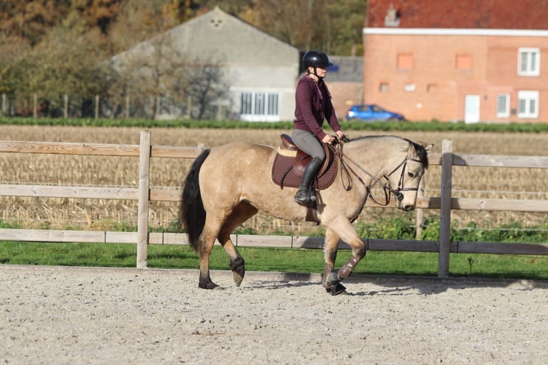 Bohola Beauty (“Bo”) Bo is een 5-jarige valk Connemara-merrie met een stokmaat van 1m53. Ze heeft een aantrekkelijk voorkomen, een zacht karakter en een nieuwsgierige ingesteldheid. Bo springt momenteel een parcourtje van 70 cm en toont duidelijk potentieel voor hoger werk. In de omgang is ze braaf, sociaal en maakt ze snel vriendjes op de weide. Ze geniet ook van wandelen buiten en blijft steeds meewerkend en attent. Bo stamt af van de bekende Connemara-hengst Bohola Mirah, een hengst met een sterke afstamming uit de lijn van Westside Mirah. Bohola Mirah staat bekend om zijn correcte bouw, goede beweging en sterke rasuitdrukking, eigenschappen die ook bij zijn nakomelingen vaak terug te zien zijn. Bo heeft een Class 1-afstamming. Ze is ook N/N getest voor hoofwall, wat extra gemoedsrust biedt over haar gezondheid en erfelijkheid. 📞 Meer info: +32 475 68 22 43 🎥 Voor video’s kan je terecht op onze website.