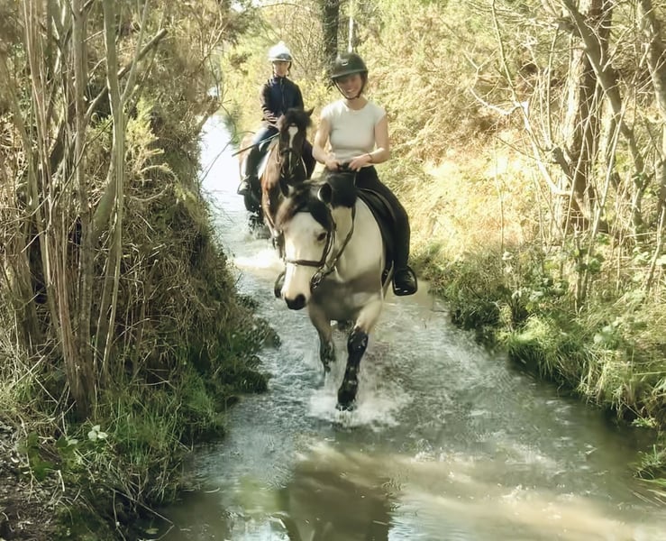 Luna 🌙 Eine Stute, die den Mond überspringen könnte. Luna ist 7 Jahre alt, 1,55 m große, dunfarbene Vollblut-Connemara-Stute mit viel Erfahrung und Leidenschaft für ihren Job! 🌙 Luna verfügt über jahrelange Erfahrung im Fuchswildbahn, im Geländetraining und bei Wohltätigkeitsritten. Sie hat bereits an unregistrierten Springwettbewerben teilgenommen und zeigt sich bei neuen Sprüngen äußerst ehrlich und vertrauenswürdig. Mit ihrer fröhlichen, vorwärts gerichteten Art führt sie gerne die Gruppe beim Ausritt an, sei es in neuen Arenen oder unbekannten Gegenden. Sie ist sowohl allein als auch in der Gruppe sehr sicher unterwegs und verhält sich auf offenen Feldern vorbildlich. Luna lässt sich im Dressurtraining problemlos im Kontakt in einem loose ring snaffle reiten und zeigt fliegende Wechsel. Sie besitzt ein kuscheliges, liebenswertes Wesen ohne mareige Verhaltensweisen. Energetisch, aber nie heiß oder scharf, wurde sie von Reitern aller Erfahrungsstufen geritten und bleibt stets motiviert zu springen, unbeeindruckt von Fehlern des Reiters. Luna liebt das Gelände und eignet sich am besten für einen jungen Reiter oder Amateur-Eventer, der eine vertrauensvolle Partnerin sucht, die immer springt und in hektischen Situationen ruhig bleibt. Sie ist leicht zu händeln: zum An- und Absatteln, Hufe auskratzen, verladen und beschlagen. Sie hat keine Macken, Knoten oder Unarten. Luna ist für jede Art von Tierarztuntersuchung offen. Der Preis inklusive Lieferung nach Großbritannien, Umtausch möglich, falls Sie nicht zufrieden sind. *Luna weist sichtbare Deckenruben auf, die nicht ihrer Fellfarbe entsprechen, wir behandeln sie dagegen! Derzeit wächst das Fell an den Stellen wieder schön mit ihrem Sommerpelz.*