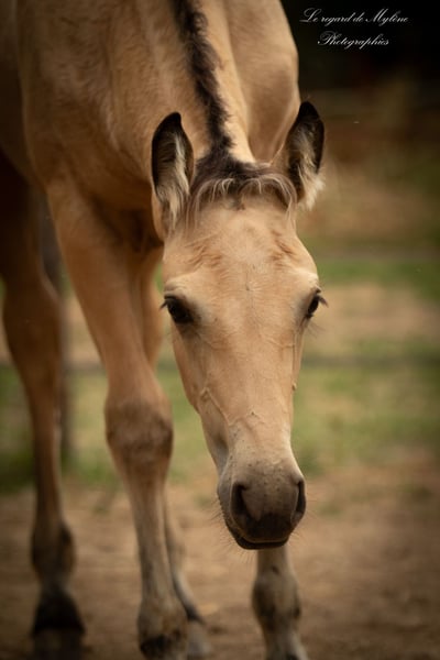 Olympe ayant trouvé sa famille, c'est au tour de la charismatique Pluie d'Etoiles de rechercher la sienne! Pluie d'Etoiles, sublime pouliche pleins papiers race crème robe isabelle née le 4 mai 2025. Mère Calanne des Dieux race crème pleins papiers robe isabelle fumée origines PRE. Père Ice Dream One race quarter horse pleins papiers robe cremello agréé facteur race crème. Toisera autour d'1m55-1m60. Curieuse, très attachante, proche de l'homme. Mental posé avec juste ce qu'il faut de sang. Sera une jument polyvalente pour toute discipline : équitation de travail, plat, extérieur, trec, equifeel, western, mountain trail, CCE, et même reproduction compte-tenu de ses papiers. Sevrage tardif progressif prévu début janvier 2026 (8 mois) voire février 2026. Vit en troupeau. Complémentée, pucée, vermifugée, suivie en parage. Elle est éduquée et maîtrise les apprentissages cohérents avec son âge (licolée, donne les pieds, marche en main ). Visible avec sa maman sur Toulouse. Transport possible sur devis. 5000€ TTC (acompte de réservation de 1000€ ; le solde pouvant être échelonné jusqu'au sevrage).