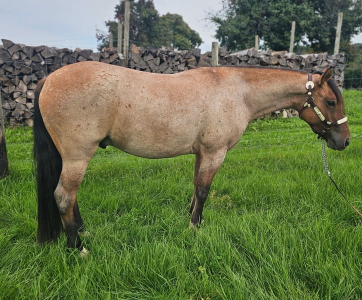 Beautiful and well-behaved Criollo gelding for sale. Sammy is 3.5 years old (born 05/2020), with an current height of 14.1 hh, and is completely untouched. Thanks to his unique bay roan coat, he is an absolute eye-catcher. He is currently stabled at night and turned out with a herd on the pasture during the day. Sammy is very easy to handle and ride. He is already very reliable in the terrain and is sure to become a wonderful trustworthy partner. Thanks to the combination of his parentage, this pony combines excellent qualities such as strength, robustness, a great character, and a solid foundation. Criollos from this line are very versatile, suitable as all-rounders, and highly valued in ranch and cattle work. Sammy loads well, is barefoot, and gets along well with others. He has been regularly dewormed and presented to the farrier.