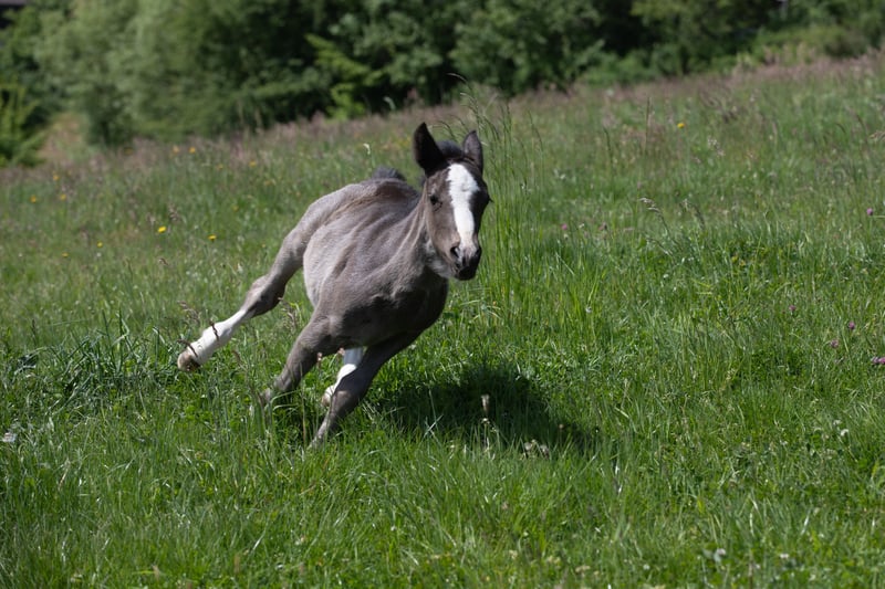 Das Fohlen zeigt sich aktuell noch etwas zurückhaltend, begegnet seiner Umwelt aber mit ehrlicher Neugier und wachsendem Vertrauen. Mit einfühlsamer Förderung entwickelt sich hier ein treuer Partner, der seinem Menschen eng verbunden sein wird.