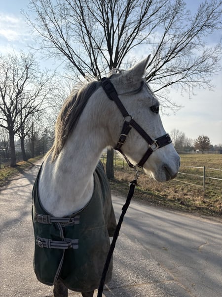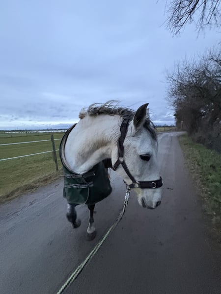 Cruzado is looking for his forever family 🐴 - will turn 11 years old - approximately 1.50 meters tall - needs an open stable with companions - has a mild hay dust allergy - has a wonderfully sweet temperament - knows and loves children and dogs - is sensitive, a bit unsure, and cautious - requires a confident, steady handler - is not suitable for beginners - has been trained in a varied manner - is very affectionate and attentive to humans - wishes to be challenged and further developed - located in 64331
