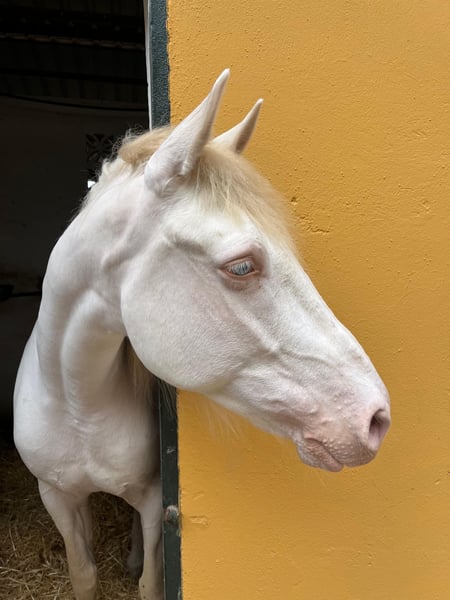 Very gentle and handsome riding horse with blue eyes. He will turn 11 years old in April. He is experienced in a wide variety of events. He is very friendly and easy to handle from the ground. Test rides are welcome without obligation, and all types of veterinary examinations are accepted.