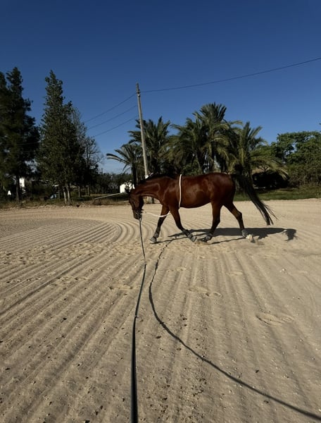 Caballo castrado cruzado (PSI X PSL) 12 años y 1,60 cm de altura. Tiene mucho caracter, fuerza y resistencia. No apto para jinetes inexpertos. Entrenado para la disciplina de salto habiendo competido en varias competiciones en alturas de 0,80 cm y 1 metro, actualmente por falta de tiempo, se encuentra como caballo de paseo por la sierra y trabajo en pista. Vacunado y desparasitado al dia, perfecto estado de salud.