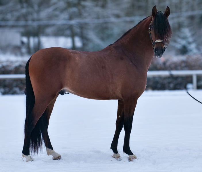 Name: Taranto Breed: Crossbred Sex: Gelding Date of Birth: April 1, 2021 Age: 5 years Height: 1.58 m (approx. 16.1 hh) Color: Bay Pedigree: No pedigree documentation Temperament: Friendly and people-oriented, eager to learn, reliable, patient, curious, intelligent, brave, calm Training/ suitability: Under saddle, leisure riding, dressage, baroque riding, working equitation Trail Experience: Dependable, fearless, resilient, suitable for both alone and in a group Health: Dewormed, vaccinated, barefoot, eczema-free, teeth checked, osteopathically treated Stabling: Box stall, paddock Special Features: Good basic gaits, stands well for farrier and loading, herd-friendly Please note that the qualities listed are based on our personal assessment and do not constitute a formal guarantee. Price: €7,900 (gross) Interested? To give you a better impression of Taranto, we would be happy to send you a riding video. Of course, we are available for a detailed description of the horse, personal consultation, and to answer all your questions via phone. Feel free to contact us anytime via WhatsApp or call us at: +49 151 19487595. Our phone hours are daily from 7:00 AM to 1:30 PM and again from 8:00 PM. We look forward to hearing from you! A clinical or radiological pre-purchase examination can be arranged with your veterinarian. Taranto can be delivered safely and comfortably to his new home. We handle all necessary preparations and transportation so that your new horse arrives stress-free, well-cared-for, insured, and in good health. Currently, we offer a carefully selected range of horses for sale. With us, you are sure to find your dream horse. Visit us also online at: www.marvinsroyalhorses.de. Dear customers, we are happy to introduce you to our horses. You are welcome to lead, groom, saddle, longe, do groundwork, or try riding in our indoor arena, on the riding yard, or in the field to get to know your new family member better. This service costs €40 per horse, with each additional horse €30, and will be refunded upon purchase. Our address: Ferdinand Grube 50 53577 Neustadt-Wied Google Maps: marvinsroyalhorses