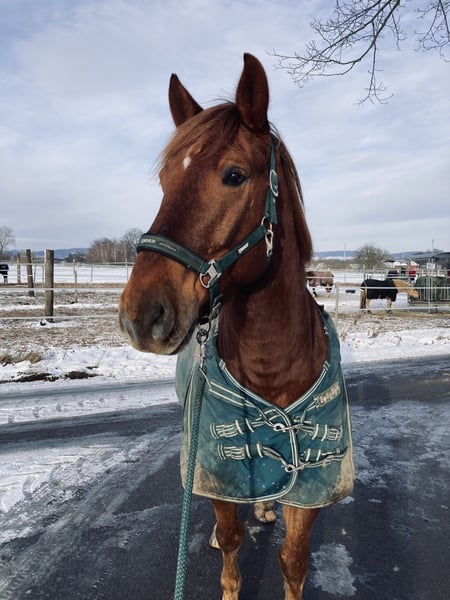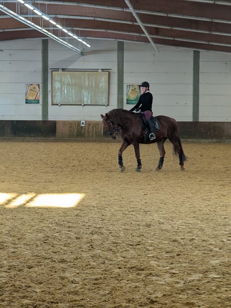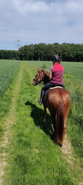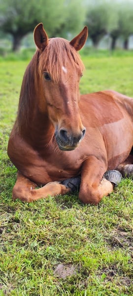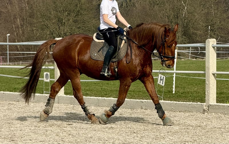 Spanish Horse Seeks His Heart People Melo is an almost 8-year-old Cruzado gelding with a height of 1.60 meters. He is typically sensitive and very attached to his human, as is common with Spanish horses. Melo is generally up for any kind of fun, enjoys riding out alone or in a group, and has a very relaxed demeanor. He is a calm and easy-going type who is rarely disturbed. I am selling him with a heavy heart because he is not the horse I am looking for in the long term. I have tried to steer him into dressage, but he only enjoys it to a certain extent and has been showing less and less willingness to be ridden in that discipline. I am looking for people who ideally have experience with Spanish horses; classical riding might be something he would enjoy. He is generally very eager to learn and wants to do something. Due to my pregnancy, he has not been in training for the past five months. Therefore, a pre-ride by me is unfortunately not possible. Melo is shod on all four legs, which should probably remain the case for many trail rides. He is presented annually to the equine dentist. In bad weather, I always took him alone to the indoor arena, and he behaved perfectly. He is currently kept in a gelding herd in an open stable and gets along well there. No dealers, no riding schools!