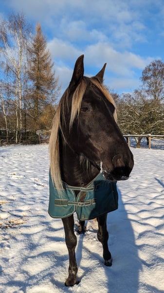 Galaan besticht durch sein Auftreten und natürlich durch seine Farbe. Ein quarakterstarker Wallach mit einem sonnigen Gemüt. Er lernt schnell und hat Spaß an Zirkuslektionen und Bodenarbeit. Auf dem Platz läuft er sicher in den drei Grundgangarten und die Veranlagung mütterlicherseits zum Tölt ist ihm auch in die Wiege gelegt. Geboren am 10.06.2016 Sein Vater PRE, seine Mutter RMH. Der Stammbaum von beiden sind aus den Fotos zu entnehmen. Bei Interesse kann ich auch noch mehr Bilder, von Mutter und Vater, sowie als Galaan Baby und Jungspund, senden Galaan ist ein ehrliches Pferd, das den Reiter lesen kann. Er ist absolut menschenbezogen, wenn er sich ersteinmal angeschlossen hat. Das muss man sich natürlich verdienen. Er kann spanischen Schritt, Kompliment, hinlegen, ect vom Boden aus. Apportieren kann er auch. Er ist hochintelligent und sensibel. Windfarbend Negativ auf PMMS2 getestet. Gesund und munter. Etwas mehr der Hippie als der Workaholic. Mit einem zweiten Pferd, dem er vertraut, geht er super ins Gelände. Alleine ist er guckig und mag nicht. Spazieren gehen wiederum kein Problem. Galaan ist ein echter Hingucker und ist auch charakterlich ein wahrer Goldschatz. Er steht in einer Wallachherde und ist super sozial und verträglich. Ein besonderes Pferd für eine/n besondere/n Reiter/in. !Bei Insta unter negroplatero gibt es noch einige Fotos und Videos von ihm! Galaan kommt direkt von seiner Züchterin zu mir und ist charakterlich völlig unverdorben. Er wurde von ihr gezogen, ist bei ihr aufgewachsen, hat das Fohlen ABC mit Liebe und Geduld gelernt und war dann bei ihr Zuchthengst, bis sie ihren Focus auf die Zucht von Arabianmountains anstatt Hispañimountains gelegt hat. Da kam er zu mir. Er wurde von mir mit 5 Jahren gelegt, nicht weil er nicht händelbar war, sondern weil ich ihn als Hengst kein artgerechtes Leben bieten konnte. Ich gebe Galaan nur ab, weil er eine/n starke/n Reiter/in braucht, der er vertauen kann, und ich aus gesundheitlichen Gründen das nicht mehr leisten kann. Ich kann sehr viel über dieses wunderbare Pferd erzählen, dich das würde Bände füllen. Aber wenn Du die richtige Person für ihn sein solltest, erzähle ich gerne mehr. Nur WhatsApp! Platz vor Preis
