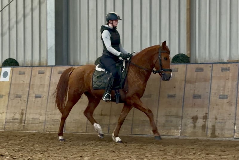 Name: Romina Rasse: Cruzado, Kreuzung Geschlecht: Stute Geburtsdatum: 18.02.2022 Alter: 4 Stockmaß: 1.48m Farbe: Fuchs Abstammung: ohne Abstammungsnachweis Charakter: neugierig, intelligent, lernwillig, mutig, geduldig, gelassen Ausbildung/Eignung: Dressur, Freizeit Geländeerfahrung: aufmerksam, nervenstark, zuverlässig, unerschrocken, alleine und in der Gruppe Gesundheit: entwurmt, geimpft, Barhufer, ekzemfrei, Zähne kontrolliert, ostheopatisch behandelt Haltung: Box, Offenstall Besonderheiten: schmiede und verladefromm, herdenverträglich Die genannten Eigenschaften beruhen auf unserer persönlichen Einschätzung und stellen keine zugesicherten Merkmale dar. Preis: 5500 (Bruttopreis) Haben wir ihr Interesse geweckt? Um Ihnen einen besseren Eindruck von Romina zu geben, senden wir Ihnen sehr gerne Ihr Reitvideo zu. Selbstverständlich stehen wir Ihnen für eine ausführliche Beschreibung des Pferdes, persönliche Beratung und zur Beantwortung aller Ihrer Fragen auch telefonisch zur Verfügung. Bitte schreiben Sie uns hierfür jederzeit eine WhatsApp Nachricht, oder rufen unter folgender Telefonnummer an: +49 15119487595 Unsere Telefonzeiten sind täglich von 7:00 - 13:30 sowie ab 20:00Uhr. Wir freuen uns über Ihre Kontaktaufnahme! Eine klinische oder Röntgenologische Ankaufsuntersuchung kann gerne vom Tierarzt Ihrer Wahl durchgeführt werden. Natürlich kann Romina sicher und komfortabel in ihr neues Zuhause geliefert werden. Wir kümmern uns um alle notwendigen Vorbereitungen und den Transport, damit Ihr neues Pferd stressfrei, gut betreut, versichert und wohlbehalten im neuen Zuhause ankommt. Zurzeit präsentieren wir eine sorgfältig ausgewählte Vielfalt an Verkaufspferden. Bei uns finden Sie garantiert Ihr Traumpferd. Besuchen Sie uns auch gerne auf unserer Homepage unter: www.marvinsroyalhorses.de. Sehr geehrte Kunden, gerne stellen wir Ihnen unsere Pferde vor und führen, putzen, satteln, longieren, Bodenarbeit sowie Probereiten in der Reithalle, auf dem Platz oder im Gelände ist Ihnen möglich, um Ihr neues Familienmitglied näher kennenzulernen. Dieses kostet für ein Pferd 40€, für jedes weitere 30€ und wird beim Kauf wieder erstattet. Unsere Adresse lautet: Grube Ferdinand 50 53577 Neustadt Wied Google Maps: marvinsroyalhorses