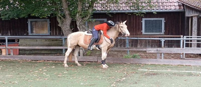 Unsere Frieda ist eine total menschenbezogene liebe Andalusier-Mix Stute. Sie wird im Juli 4 Jahre alt und ist momentan ca. 153 cm. Kurze Eckdaten anstatt Roman: - Schmusemaus - super bequem zu sitzen - geht Gelände, Platz, Halle, Longe, super lieb und lernwillig - Trailparcour mit Wippe, Brücke, Reifen…...macht sie alles - steht mit groß und klein auf der Koppel - kennt Boxe und Offenstall - waschen, Hufschmied,…...kennt sie alles, macht sie alles - geimpft, entwurmt - Aku kann gerne gemacht werden Für weitere Fragen bitte anrufen unter 01739477261 oder per WhatsApp. Videos auf Anfrage. Mails werden nicht zeitnah beantwortet. Fürs Vorstellen, Probereiten verlange ich eine pauschale von 25 Euro.