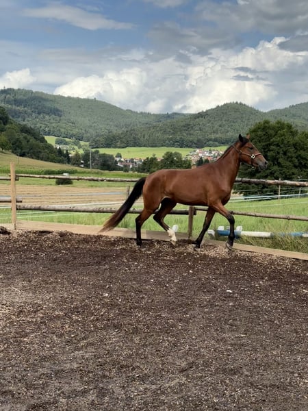 Talentierte und wunderschöne Cruzadostute aus einem Menorquin Vater und einer PRE Mutter. Eine Tänzerin mit vielversprechender Mechanik und ausdrucksstarker Präsenz. Die Eleganz einer Ballerina hat sie von ihrer Mutter und das Fundament und die Kraft bringt das menorquinische Blut sich. Nun 4 jährig ist ihr die Weide zu langweilig und sie sehnt sich nach neuen Aufgaben und einem Menschen der ihr die Welt zeigt.