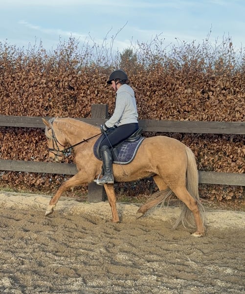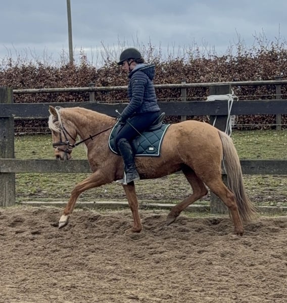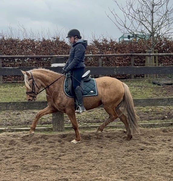 Te koop staat een merrie van 4,5 jaar oud, ongeveer 151 cm hoog, in de prachtige kleur Dunalino zonder afstamming. Ze is goed getraind voor recreatief rijden en toont veel talent in dressuurwerk op de rijbaan. Kleine sprongen beheerst ze ook zonder problemen; deze vaardigheden kunnen uiteraard nog verder ontwikkeld worden. Ze vertoont geen ongewenst gedrag onder het zadel en is vrij gemakkelijk te rijden. Daarom zou ze zeker ook interessant zijn voor een rijschool. In de omgang is ze eveneens zeer betrouwbaar en braaf. Ze woont bij ons in een open stal en is zeer verdraagzaam, zelfs in een gemengde kudde. Ze kan robuust gehouden worden, maar kent ook de box. Ziekten of allergieën zijn niet bekend. Een gezondheidskeuring (AKU) is gerust mogelijk. Voor proefritten, het voorrijden of andere kennismakingen rekenen wij €35. Bij aankoop wordt dit bedrag verrekend. Graag bellen of een bericht sturen naar 0157 36803742. Alle informatie is zonder garantie, prijswijzigingen voorbehouden, transport mogelijk, online aankoop mogelijk.