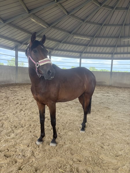Zum Verkauf steht eine wunderschöne dunkelbraune Cruzado-Stute, geboren 2020, mit einem Stockmaß von ca. 162 cm. Sie überzeugt durch ihr sehr freundliches, menschenbezogenes Wesen und ist lieb sowie unkompliziert im täglichen Umgang. Die Stute ist gesund, regelmäßig gearbeitet und kennt die Grundlagen der Reiterei. Unter dem Sattel ist sie sensibel und aufmerksam und möchte klar, ruhig und sicher geführt werden. Daher ist sie nicht für Anfänger oder unsichere Reiter geeignet, sondern wünscht sich einen erfahrenen Reiter, der ihr Sicherheit gibt und sie fair weiter fördert. In den richtigen Händen zeigt sie sich motiviert, ehrlich und angenehm zu reiten. Ob entspannte Ausritte, Spaziergänge im Gelände oder ruhige Arbeit auf dem Reitplatz – sie ist vielseitig einsetzbar und freut sich über abwechslungsreiche Beschäftigung. Gesucht wird ein pferdeerfahrenes, liebevolles Zuhause, in dem ihr tolles Wesen geschätzt wird. 📍 Besichtigung nach Absprache möglich Bei Interesse oder weiteren Informationen gerne melden