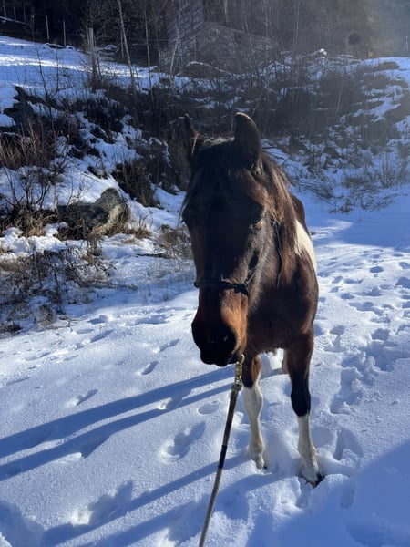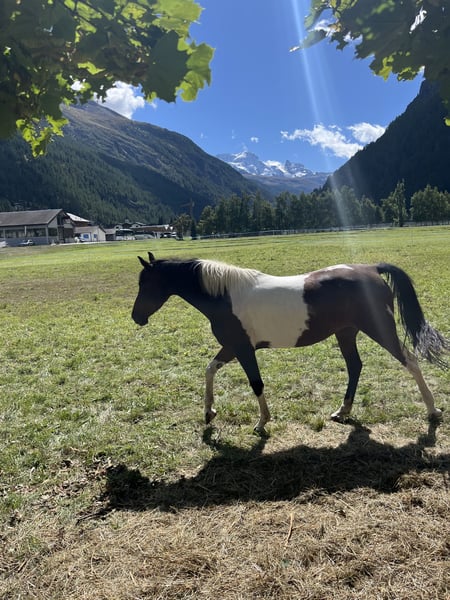 Vaya è una splendida, aperta e socievole cavalla Cruzado. Ha andature molto morbide e confortevoli ed è molto delicata nel maneggio. Nell’estate del 2025 è stata avviata dolcemente alla disciplina Parelli Natural Horsemanship e montata in tutte e tre le andature in arena, anche se le mancava ancora un po’ di equilibrio e forza al galoppo. Da autunno lavora principalmente a terra e ha preso una pausa dalla monta. È sempre motivata e molto sincera, non gradisce troppo la pressione. A causa del suo temperamento, non è adatta a principianti o bambini; necessita di un cavaliere esperto e di una mano delicata. Può essere un po’ spaventata e talvolta tendere a reagire eccessivamente, anche saltellando, ma non è mai cattiva e si lascia sempre gestire bene. Attualmente si trova in paddock con altre femmine; conosce anche il box e il pascolo durante il giorno, anche se credo che preferisca il paddock aperto a causa del suo desiderio di movimento e del suo carattere sociale. È piuttosto di rango basso e molto socievole. Certificato di salute (AKU) disponibile, è barefoot. Purtroppo non abbiamo un’affinità perfetta, perciò vorrei trovargli una nuova casa da una persona che possa offrirle la vita che merita, perché Vaya merita solo il meglio: è una vera gemma.