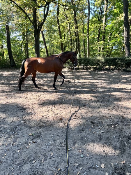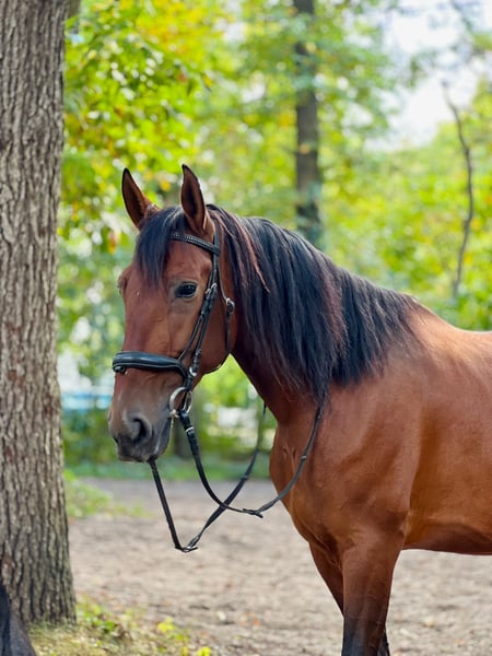 Bruja is a lovely, people-oriented mare who enjoys cuddling and shows great affection in daily handling. She is very attentive, reacts sensitively to her environment, and needs an experienced handler who can provide her with security. She is familiar with groundwork and works with motivation. When lunged, she displays a lot of temperament. According to her previous owner, Bruja has been ridden and driven. With us, she was under saddle for nearly two weeks, as she was intended for our riding school. However, we quickly realized that rider changes are not suitable for her. She appears more spirited and somewhat more uncertain than during the trial ride. Nevertheless, we believe that with patience, trust, continued muscle development, and consistent training, she has the potential to become a reliable riding horse. We could also see her as a broodmare. She is accustomed to turnout in an open stable, pasture, paddock, or even staying in a box overnight. Feel free to contact us to get to know her better.