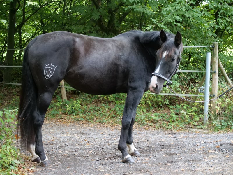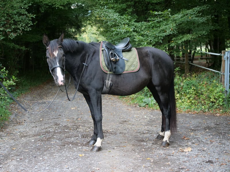 Beautiful Cruzado mare is looking for her family We are offering a charming Cruzado mare for sale. The elegant black mare was born in 2017 and has a height of 163 cm. She is ideal for active riders who want to grow with their horse and is excellent for trail rides, groundwork, and relaxing hours in nature. She has a good basic pace in walk, and her trot and canter are very well-mannered and absolutely smooth, making her comfortable to sit on. She is completely cool and fearless in the field, even alone without other horses. With us, she is ridden purely for leisure in the field. (No riding arena or indoor arena available) The mare is very well-behaved in handling and has a pleasant temperament. She lives with us in a paddock in a mixed herd and shows a mid-ranking position. We are happy to take care of the transportation to her new home for a fee or assist with the organization. If you are looking for a loyal companion for unforgettable adventures in nature, then this Cruzado mare could be just right for you! For interest or further questions, please call 015140790104. Viewings are possible by appointment.