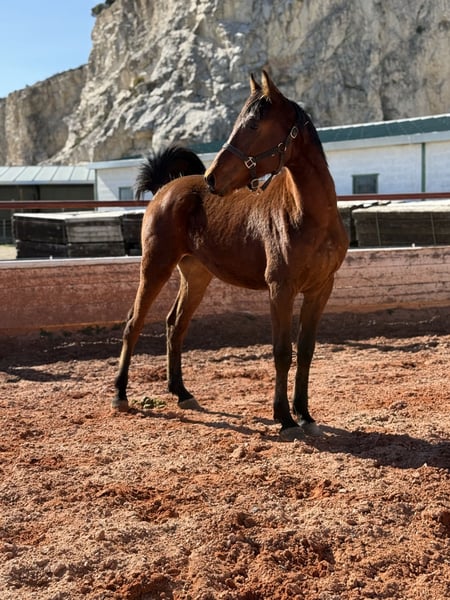 Unieke kans voor paardenliefhebbers! Te koop aangeboden: prachtige kruisinghengst, geboren in 2023. Zoon van een Arabische volbloed en een Spaanse trotje. Met een kastanjekleurige vacht is dit exemplaar ideaal voor wie op zoek is naar een metgezel voor enduranceritten. Zijn energie en karakter maken hem een uitstekend potentieel voor sport en avontuur. Mis deze kans niet om deze schitterende paard aan te schaffen. Voor meer informatie en het plannen van een bezoek, neem gerust contact met ons op. Kom hem ontmoeten en laat je betoveren door zijn schoonheid en potentieel!