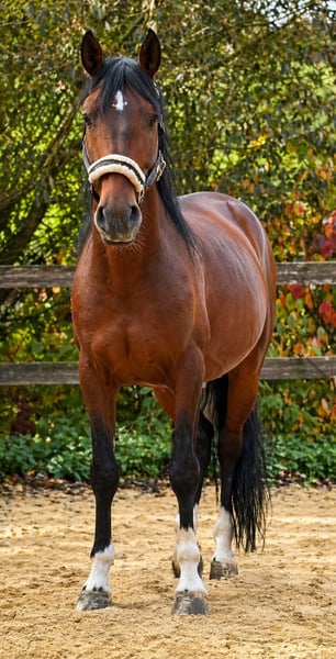 🔹 Beschrijving: Te koop staat een prachtige Cruzado hengst, geboren in 2018, met een schofthoogte van ongeveer 152 cm. Hij valt op door zijn harmonieuze verschijning, zijn expressieve hoofd en zijn vriendelijke, mensgerichte karakter. Een paard dat meteen in het oog springt en tegelijkertijd overtuigd door zijn oprechte aard. Onder het zadel toont hij zich solide op A-dressuurniveau met drie betrouwbare basisgangen. Zijgangen en buitenwaarts galopperen zijn al aanwezig en goed te controleren. Hij werkt gemotiveerd mee en toont veel leergierigheid en plezier in verdere ontwikkeling. Hij is een klein plezierpaard dat zijn ruiter dagelijks een goed gevoel geeft en tegelijk voldoende potentieel heeft voor verdere dressuurmatige groei. In de omgang toont hij zich over het algemeen braaf, attent en coöperatief. Hij kent zowel de binnen- als buitenbak en wordt regelmatig gereden. Een ideaal paard voor ambitieuze recreatieve ruiters of ruiters die op zoek zijn naar een eerlijk paard met perspectief. 🔹 Gegevens: * Ras: Cruzado * Geslacht: hengst * Geboren: 2018 * Schofthoogte: circa 152 cm * Opleidingsniveau: A-dressuurniveau * Locatie: Saarland 🔹 Bijzonderheden: * Mensgericht & vriendelijk * Solide basis in dressuur * Zijgangen & buitenwaarts galopperen aanwezig * Gemotiveerd en leergierig * Ideaal recreatie- en opleidingspaard 🔹 Reitvideo beschikbaar op WhatsApp bij interesse