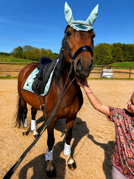 🔹 Beschreibung: Zum Verkauf steht ein wunderschöner Cruzado Hengst, geboren 2018, mit einem Stockmaß von ca. 152 cm. Er besticht durch seine harmonische Erscheinung, seinen ausdrucksstarken Kopf und sein freundliches, menschenbezogenes Wesen. Ein Pferd, das sofort ins Auge fällt und gleichzeitig durch seinen ehrlichen Charakter überzeugt. Unter dem Sattel präsentiert er sich solide auf A-Dressur-Niveau mit drei sicheren Grundgangarten. Seitengänge sowie Außengalopp sind bereits vorhanden und sicher abrufbar. Er arbeitet motiviert mit und zeigt dabei viel Lernbereitschaft sowie Freude an weiterer Förderung. Er ist ein kleines Spaßmobil, das seinem Reiter täglich ein gutes Gefühl gibt und gleichzeitig ausreichend Potenzial für die weitere dressurmäßige Entwicklung mitbringt. Im Umgang zeigt er sich grundsätzlich brav, aufmerksam und kooperativ. Er kennt sowohl Halle als auch Außenplatz und wird regelmäßig gearbeitet. Ein ideales Pferd für ambitionierte Freizeitreiter oder Reiter, die ein ehrliches Pferd mit Perspektive suchen. 🔹 Daten: * Rasse: Cruzado * Geschlecht: Hengst * Geboren: 2018 * Stockmaß: ca. 152 cm * Ausbildungsstand: A-Dressur Niveau * Standort: Saarland 🔹 Besonderheiten: * menschenbezogen & freundlich * solide dressurmäßige Grundlage * Seitengänge & Außengalopp vorhanden * motiviert und lernwillig * ideales Freizeit- und Ausbildungspferd 🔹 Reitvideo bei Interesse via WhatsApp