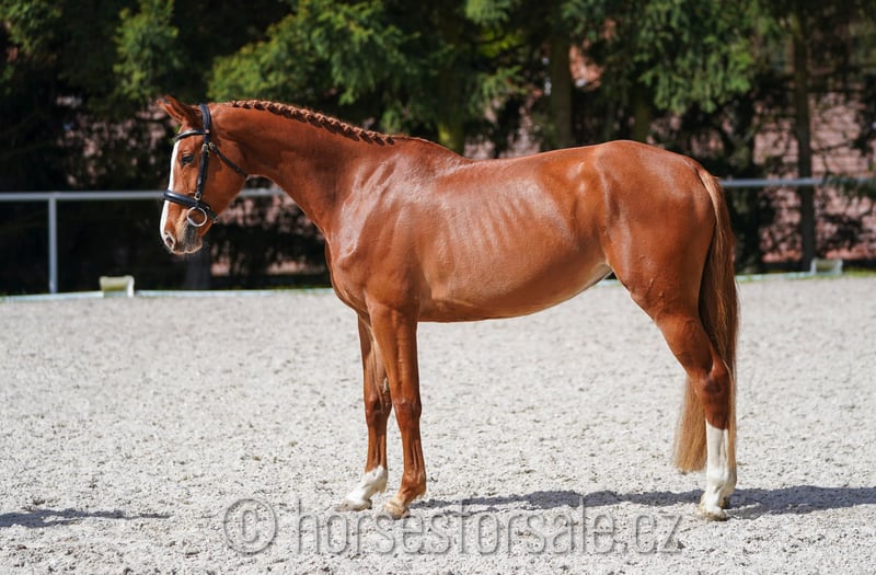 BEATRIX - Conquistador x Baloubet du Rouet, vielversprechende kleine Stute Beatrix ist eine kleine Stute für den Springsport, ist erst seit Frühlinh unter dem Sattel, da sie mit 4 ein Fohlen hatte, sammelt gerade erste Turniererfahrungen mit einem Amateur im Sattel. Sie zeigt beim Freispringen enorme Springkraft und tolle Technik, unter dem Sattel ist sie auch motiviert und sehr mutig am Sprung. Wegen ihrer Größe eignet sie sich bestens für eine Dame oder Amazone, ist lernwillig und klar im Kopf. Die Stute wurde noch nicht geröntgt, aber auf Wunsch können die RTG-Bilder jederzeit gemacht werden. Preis: 17.000€ Mehr Infos gerne unter Tel.: +420 602 862 723 https://youtu.be/DpT6g8wvXPk https://youtu.be/YRIeHZhqx0Q https://youtu.be/tvEQoCv3Hak Geb.: 2020, Stockmaß: 161 cm, Abstammung: Conquistador x Baloubet du Rouet Standort: 37001 Ceske Budejovice, Tschechien, Transport kann organisiert werden. *** weitere Pferde unter www.verkaufspferde.cz ***