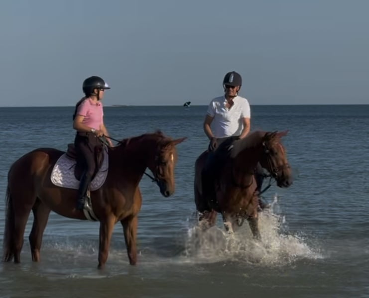 Siodłana klacz Francuska 7 lat – Podwójny Quidam – Nabab de Rêve – Potencjał 1,40 m Po Uraeus Blanc (potomku Nabab de Rêve, syna Quidam de Revel) oraz Eden de Rhodes, po Salto des Nauves (potomku Dollar de la Pierre, samego po Quidam de Revel) Rodowód: Klacz jest po Uraeus Blanc, synu Nabab de Rêve (po Quidam de Revel), z linią rodzinną zawierającą Le Tot de Semilly, co zapewnia siłę, respekt, technikę i prawdziwą genetykę międzynarodowych przeszkód. Jej matka, Eden de Rhodes, jest po Salto des Nauves, synu Dollar de la Pierre, samego po Quidam de Revel. W rodowodzie występuje więc podwójny wpływ Quidam, co przekłada się na mental, regularność i wysoką jakość skoku. Tradycyjna linia rodowodowa Selle Français (Baladine du Mesnil / Le Sartillais / Quouglof Rouge) zapewnia stabilność i solidność. Całość tworzy spójny, dobrze zbudowany profil, wyraźnie skierowany na sport na poziomie 130/140 cm. Klacz łączy: - Podwójny wpływ Quidam de Revel (mentalność, technika, inteligencja nad przeszkodami) - Potencjał i amplitudę Nabab de Rêve - Wydajną i sprawdzoną francuską genetykę - Solidną, tradycyjną linię rodowodową Selle Français (Baladine du Mesnil / Le Sartillais) Krzyżówka zapewnia technikę, respekt i łatwość użytkowania, jednocześnie zachowując siłę i możliwości. Strukturalny, spójny rodowód wyraźnie ukierunkowany na sport, przygotowany na poziom 1,40 m. Sytuacja sportowa: - Debiut w wieku 4 lat - Brak sezonu w wieku 5 lat z powodów osobistych rodzinnych - Stopniowe wprowadzenie do treningu od 6 lat - Obecnie bez problemu i z pewnością pokonuje przeszkody 1,10–1,15 m - Gotowa do szybkiego rozwoju do 1,25–1,30 m - Potencjał 1,40–1,45 m - Bardzo łagodna, łatwa w obsłudze, odpowiednia dla amatora, z naturalnym respekt i dobrym balansem - Klacz o energicznym temperamencie, z solidnymi podstawami i prawdziwym potencjałem komercyjnym Więcej informacji przez WhatsApp: +33 6 10 05 52 61